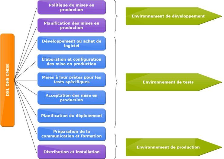 Avant tout déploiement, il faut au préalable informer les personnes en charge de la gestion des configurations pour qu’ils mettent à jour la CMDB, la DSL et la DHS.